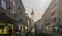 Über das Werk: Der Blick auf Würzburg, von der Festung aus, inspirierte mich zu diesem Bild. Es war mein erster Besuch in der Stadt und sofort erkannte ich das perfekte Motiv für das Gemälde einer Frau, die, wie ich, diese schöne Stadt zum ersten Mal erblickt. Meine Ziel ist es, die warmen Farben der Stadt am späten Nachmittag im Sommer zu zeigen.
