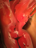 Über das Werk: Die Geburt beschreibt ein sensibles und zerbrechliches Thema der Frau! Durch die Hinterglasmalerei kommt der Schutz des ungeborenes Kindes durch eine zweite Glasplatte die sandgestrahlt wurde deutlich in den Mittelpunkt! Das Bild kann von hinten beleuchtet werden oder aber in einem Fenster seinen Platz finden wo es durch das Licht seine Presenz wieder gibt.