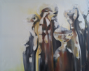 Material: 2 Glasplatten / Hinterglasmalerei / Sandstrahltechnik Entstehungsjahr: 2002 Grösse: 50 x 50 cm Rahmung: Eschenrahmung 2 x geschient