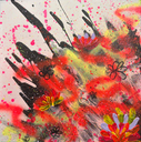 Material: Acryl, Spray, Ölkreide & Lackmarker auf 300g/m2 Aquarellpapier Entstehungsjahr: 2025 Grösse: 30 x 30 cm Rahmung: 40x40cm Echtglasrahmen Kohleoptik mit Passepartout