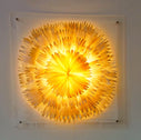 Über das Werk: Die Idee für die Lichtobjekte aus Mais-Blättern ist entstanden, als ich in Mexiko City in einer der großen Markthallen die zu bündeln geschnürten Maisblätter entdeckte. Die Faszination der Blattstruktur und ihre goldgelbe Färbung brachten mich sofort auf den Gedanken, sie mit Licht in Verbindung zu setzen.