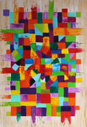 Über das Werk: Dieses Werk ist von den Farben des Dorfes von Chuarrancho inspiriert. Die Idee besteht darin, ein Huipil (guatemaltekische Bluse) durch eine Abstraktion darzustellen, bei der die Farben verschmelzen. Es ist das Gemälde, das Freiheit, Ruhe und Glück darstellt. Jede Farbe harmoniert mit den anderen und birgt einen Überraschungseffekt.