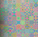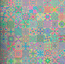 Über das Werk: Das ist das erste von insgesamt vier Leinwänden im gleichen Format. Es besteht aus insgesamt 99 Einzelzeichnungen auf kleinen Blättern. Zum Abschluss habe ich einen UV-Schutz aufgebracht, damit die Farben hoffentlich nicht verblassen.
