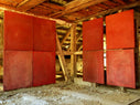 Über das Werk: Sechs zusammenhängende Farb-Leinwandarbeiten. Pigmentauftrag matt, starke Pigmentwirkung, um in den Farbraum einzutauchen. Als Installationselemente flexibel auf den Ort abgestimmte Hängung, da dies erst die Vollendung des Werks durch die Neugewichtung des Raums zu einem neuen 'Denk-Raum' ermöglicht.
