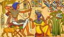 Über das Werk: Eine reizvolle Komposition von drei Musikantinnen. Zwei Damen, rechts und links, tragen fast durchsichtige Beinkleider. Die Dame in der Mitte ist nur mit einem kleinen Slip bekleidet, der durch einen mit Edelsteinen besetzt Gürtel gehalten wird. Zu der damaligen Zeit traten solche Musikantinnen bei Festlichkeiten in solch freizügigen Kleidern auf. Man beachte das Ende der Harfe, das mit Leopardenfell bespannt ist.