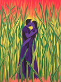 Über das Werk: Diese digitale Arbeit fängt die reine, ungefilterte Lebensfreude ein. Drei tanzende Silhouetten nackter Frauen verschmelzen mit einem leuchtenden Hintergrund aus fließenden, organischen Formen und satten Farben. Die Komposition spielt mit der Transparenz und erinnert stilistisch an die Technik des Scherenschnitts oder der Collage, während die sanften Farbübergänge eine Hommage an den Aquarell-Stil sind. Die dynamischen Posen der Frauen und die tropischen Blätter im Vordergrund vermitteln ein Gefühl von Freiheit und wilder, ausgelassener Energie. Es ist ein Kunstwerk, das die Weiblichkeit feiert und jedem Raum eine pulsierende, positive Schwingung verleiht.