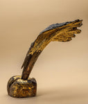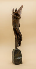 Über das Werk: Die von der Zeit geformte Holzskulptur erinnert in ihrer Form auf faszinierende Weise an einen Pferdekopf. Umgeben von einem eleganten, handgefertigten Rahmen aus robustem Robinienholz schwebt das Stück nahezu schwerelos im Raum – gehalten von dezenten Stahlseilen. Schwebend im Rahmen verbindet sie wilde Natürlichkeit mit moderner Präsentation.