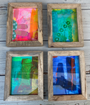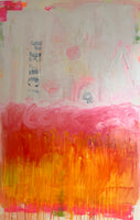 Über das Werk: Eine Annäherung an Farbe und Textur, eine Mischung aus Stoffen und Papierelementen trifft auf Farbflächen.