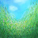 Über das Werk: Das Bild zeigt eine abstrahierte Wiese im Drip-Painting Stil.