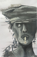 Über das Werk: Ein altes Gesicht, weise, müde und doch lebendig. Die Pinselstriche sind weich und wild zugleich, als würde Wind durchs Bild wehen. Die Schrift trägt eine Botschaft, die bleibt: