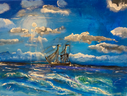 Über das Werk: Die Leinwand geschwärzt und plötzlich entstanden Umrisse und es entwickelte sich zu diesem stimmungsvollen Bild.