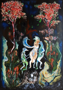 Über das Werk: Die "blauen" Wölfe in so manchen meiner Träume und Fantasien erlebte ich in meiner Kindheit und Jugend als meine, mich beschützende Wächter, wenn irgend eine Bedrohung und Gefahr bestand.