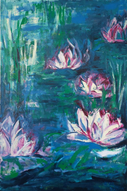 Über das Werk: Grün-Blautöne in Mischtechnik