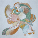 Über das Werk: Metallic-Aquarellfarben auf handgeschöpftem Aquarellpapier.