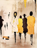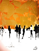 Über das Werk: Ein Besuch in der Großstadt inspirierte mich zu diesem Bild. Viele Menschen, jeder einzelne sehr individuell, aber in der Menge gesichtslos..
