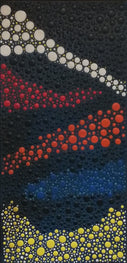 Material: Keilrahmen, Acrylfarben auf Strukturhintergrund, Holz, Perlen und verscheidene akfrikanische Elemente eingearbeitet.