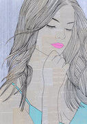 Über das Werk: Three techniques of Martina merge on one canvas...one of her first paintings which includes both techniques, her vintage pattern 3D mixed media technique in combination with her illustration technique and bookpage technique presented on one painting.