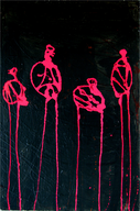 Über das Werk: Auf den ersten Blick handelt es sich um ein informelles, abstraktes Werk. Bei nährer Betrachtung meint man, Figuren zu entdecken, organische Strukturen, den Verweis auf Leben und Lebewesen. Der Künstler hat sein Werk sehr prompt und expressiv auf die Leinwand gemalt, mit flüssiver und verschiedenen grafischen Elementen. Das reduzierzte Kolorit mit leichtenden und matten Tönen geht konform mit der ebenso zur Formel verknappten, ausbalancierten Bild-Komposition. Das Kunstwerk ist in mehreren Prozessen organisch gewachsen und hat so eine Struktur erhalten, welche haptisch erfahrbar ist.