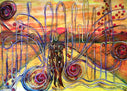 Über das Werk: Hathor ist eine altägyptische Gottheit, sie ist das Sinnbild für die Liebe, einer überirdischen göttlichen Liebe. Hathor auf der Reise zeigt, es ist die Liebe unterwegs, wir können Ihr überall und zu jeder Zeit begegnen. Sie ist niemals an einen Ort, eine Person oder eine Zeit gebunden, die wir in Liebe erleben, an einem besonderen Ort, mit einem geliebten Menschen, in einer Zeit des Verliebtsein......Wir können sie nicht festhalten, doch verlieren wir sie auch nicht, solange wir sie in uns selbst tragen. Das Bild ist im Art Deco Stil von Makintosh inspiriert.