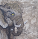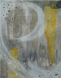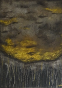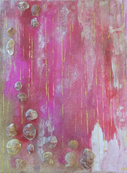 Material: Leinwand, Muscheln, Asche-, Ruß-, Erdpigmente, Bindemittel, Strukturpaste mit Sand, weiße natürliche Pigmente, goldene Acrylfarbe