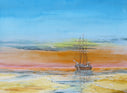 Über das Werk: Das Bild zeigt den Blick von der Küste auf die See mit einigen Seglern am Horizont.