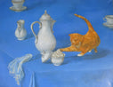 Über das Werk: Ich beobachte gerne die Katzen. Sie geben viel Freude in unserem Leben. Deswegen entscheidete ich eine Serie von Katzen zu malen. Ich zeige einen kurzen Moment. Das Bild strahlt nach guter Stimmung durch leuchtende Farbe und ungewöhnliche Komposition.