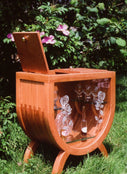 Material: Schmelzglas Artista, Floatglas mit Glaspuder gesandstrahlt und Holz Amaranth geölt Entstehungsjahr: 2014 Grösse: ca. 110 cm x 74 cm, ca. 42 cm x 32 cm und ca. 50 cm x 32 cm