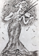 Über das Werk: Kaltnadelradierung "Musikversunken" entstanden 2019, handgefertigter Druck auf einer Radierpresse (Druck 1 von Auflage 10)