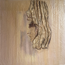 Über das Werk: Tuch auf eine Bau-Dämmplatte (Styropor) gefaltet, verklebt und gehärtet. Bemalt mit Acrylfarbe und Goldlack. Die Leichtigkeit des Seins, ca. 300 Gramm.