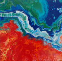 Acryl-Pouring-Bild, Größe: 50 cm x 40 cm, Keilrahmen mit Canvas, zweimal grundiert, handgemalt mit hochpigmentierten Acryl-Farben, handsigniert, zweimal mit Firnis versiegelt, Entstehungsjahr: 2025