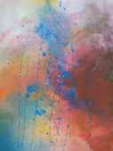 Über das Werk: In dezenten Farben stelle ich mir die Lebensfreude vor, die ja nicht immer überschäumend ist. Die Farben grün, braun und erdiges orange führen von unten nach oben zum hellen Licht, wo sich die Lebensfreude zeigt.