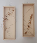 Material: selbst geschöpftes Papier auf Leinwand Entstehungsjahr: 2023/2024 Grösse: 3 Leinwände mit 2 cm Abstand gehängt. (BxH) Jeweils 80 x 15.5 cm / Gesamtmass 80 x 50 cm Rahmung: ungerahmt