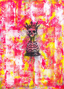 Über das Werk: Zwischen den Welten ist ein visuelles Echo innerer Zustände – ein Porträt seelischer Zwischenräume. Schädel als Symbole des Vergänglichen begegnen leuchtenden Farbschichten, die Leben, Energie und Widerstandskraft verkörpern.