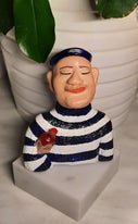Über das Werk: Dr. Lummel wurde aus lufttrocknender Tonmasse hergestellt, mit Acrylfarbe bemalt und mit einem Schutzlack versiegelt.