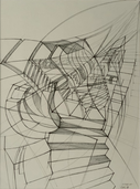 Über das Werk: Das Labyrinth von Treppen führt uns in die Stadt.
