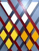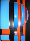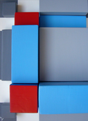 Über das Werk: Die Wandskulptur "G1" transformiert - betont durch Formen und Farben - Schrift zu Architektur oder Architektur in Schrift. Die architektonischen Buchstaben werden gerne als künstlerische Initialen gekauft, z.T. mit einem eigens designten Layout überlappender Initialen von Partnern.